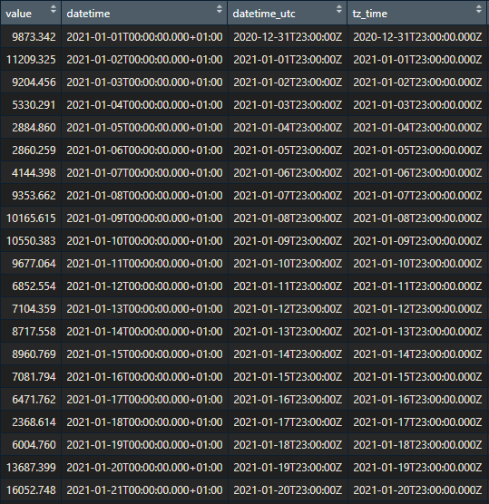 Now, you can define the following function to retrieve data from the input indicators. Have into account that you need to set a start date and end date for the function to work. You will be also retrieving data aggregated by geo, and truncated by day. You might change these paremeters or include them as an function input according to your needs.